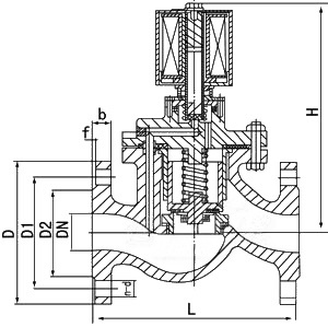 本閥是有副閥和主閥兩大部件構(gòu)成的先導式二次開闊的電磁閥。是靠副閥的啟閉來控制主閥的通斷。根據(jù)斷電時所處開關(guān)狀態(tài)的不同,可分為常閉電磁閥和常開電磁閥。常閉電磁閥,在段點常位時,副閥口封閉,主閥呈斷路,當電訊號進入導閥線圈時,活動鐵芯受電磁力作用吸上打開副閥口,主閥閥杯內(nèi)壓力導速消失,介質(zhì)壓力將主閥閥杯托上,開啟主閥,工作介質(zhì)便可流通。但當電訊號消失時,活動鐵芯復位,封閉住副閥口,工作介質(zhì)自平衡孔進入閥內(nèi),當壓力趨于平衡時,靠主閥彈簧,閥杯自重及介質(zhì)壓力使閥杯下移,嚴密封住主閥口,閥有呈封閉狀態(tài)。常開電磁閥,在斷電常位時,有彈簧作用,副閥口打開,主閥流通。當電訊號進入副閥線圈時,活動鐵芯受電磁作應(yīng)吸下,當壓力趨于平衡時,靠主閥彈簧、閥杯自重及介質(zhì)壓力使閥杯下移,嚴密封住閥口,閥門呈關(guān)閉狀態(tài)。當主閥斷電時,電磁力消失,副閥找開,主閥杯內(nèi)壓力迅速消失,介質(zhì)壓力將主閥閥杯托上,開啟主閥口,介質(zhì)流通,閥呈開啟狀態(tài)。