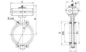 D671X pneumatic butterfly valve with double eccentric structure has the sealing function of tighter and tighter with reliable sealing performance. The stainless steel and NBR oil resistant rubber pairs are used for sealing materials, and the service life is long. Rubber sealing ring can be located on the valve body, can also be located on the butterfly plate, can be applied to different characteristics of the medium for users to choose. The butterfly plate adopts a frame structure with high strength, large flow area and small flow resistance. The integral baking paint can effectively prevent corrosion and can be used in different media as long as the sealing material of the sealing valve seat is changed. D671X pneumatic butterfly valve with two-way sealing function, installation is not controlled by the flow of media, and is not affected by the spatial position, can be installed in any direction. The valve has unique structure, flexible operation, labor saving and convenience.