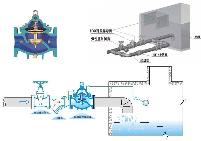 100X遙控浮球閥由主閥、針閥、球閥、浮球閥、微型過濾器等組成水力控制接管系統(tǒng),調(diào)定后,自動控制液面高度。