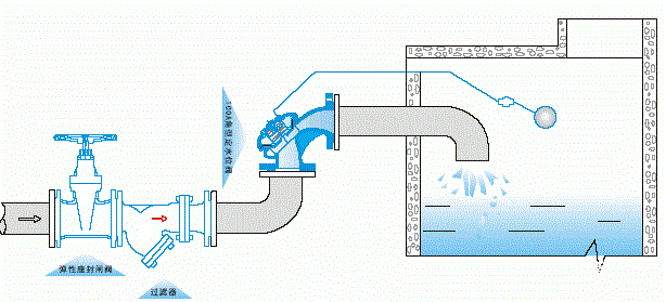 100A角型定水位閥是一種隔膜式調(diào)節(jié)水箱和水塔液面高度的閥門。閥門由一特殊強(qiáng)化尼龍膜片將其分為上下兩個(gè)腔室,當(dāng)液面達(dá)到設(shè)定位置時(shí),浮球?qū)чy關(guān)閉,上腔壓力大于下腔,閥門關(guān)閉,即停止供水.當(dāng)液面下降超過預(yù)設(shè)位置,浮球?qū)чy開啟,上腔壓力小于下腔壓力,閥門開啟.閥門向池內(nèi)供水。角型定水位閥安裝方便,可省去管道彎頭,節(jié)省安裝空間。該閥保養(yǎng)簡單、靈活耐用、液位控制準(zhǔn)確度高,水位不受水壓干擾且關(guān)閉緊密不漏水,性能可靠、成本低。浮球可隨水池的高度和距離安裝。