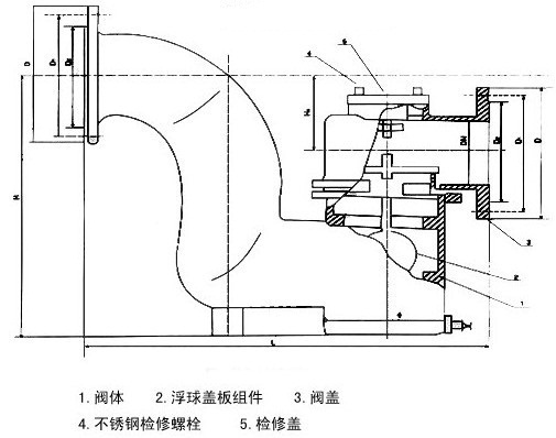 F43X-1.0T防逆水封閥主要由帶存水彎的閥體及浮球蓋板組件等組成,帶浮球的蓋板蓋在閥體的密封閥座上,將閥腔分成內(nèi)外兩部分,內(nèi)腔為清水部分,外腔通排水管道,當內(nèi)腔充滿清水時.因位于內(nèi)腔的浮球作用,蓋板壓力降低,易于開啟通流。溢流停止后,蓋板可白行復(fù)位.蓋嚴閥座,從而可嚴格阻斷臭氣及污水倒灌。